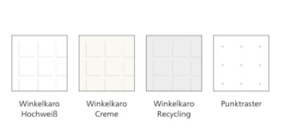 Die Gestaltung endet nicht beim Einband. Auch das Seitenlayout im Inneren kann angepasst werden. Neben weißem oder cremefarbenem Papier, kann oft auch zwischen verschiedenen Lineaturen ausgewählt werden. Zur Auswahl stehen oft: Winkelkaro hochweiß, Winkelcaro Creme, Winkelkaro Recycling und Punktraster. Seit diesem Jahr bieten wir bei noch mehr Business-Notizbücher Punktraster an. Alle Notizbücher mit Punktraster entdecken.