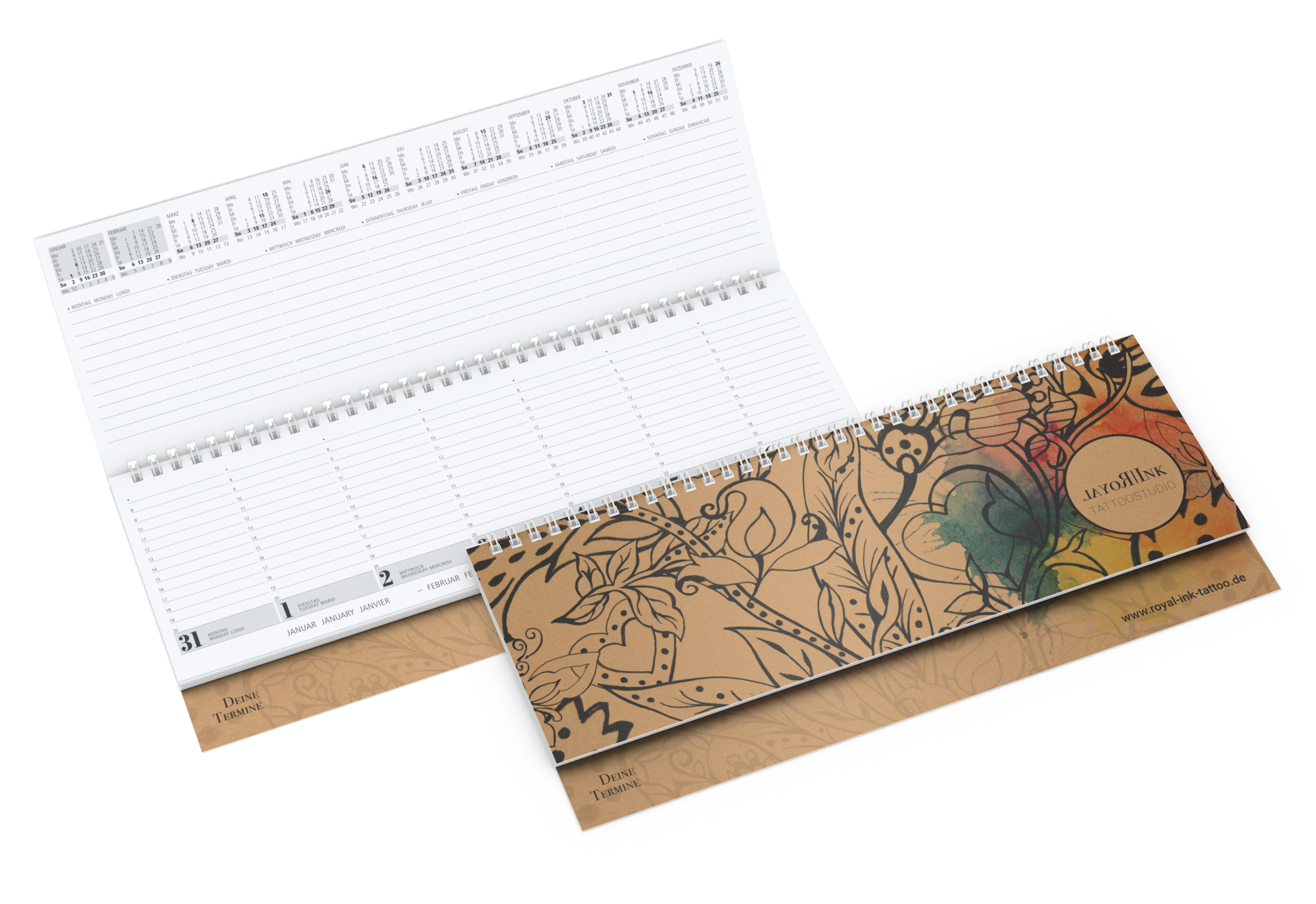 Der Tisch-Querkalender Boss ist der ideale Kalender für anspruchsvolle Unternehmen. Mit seinem hochwertigen Design, vielfältigen Einbandmaterialien und zahlreichen Veredelungsmöglichkeiten kombiniert er Professionalität und Markenpräsenz in einem Produkt.