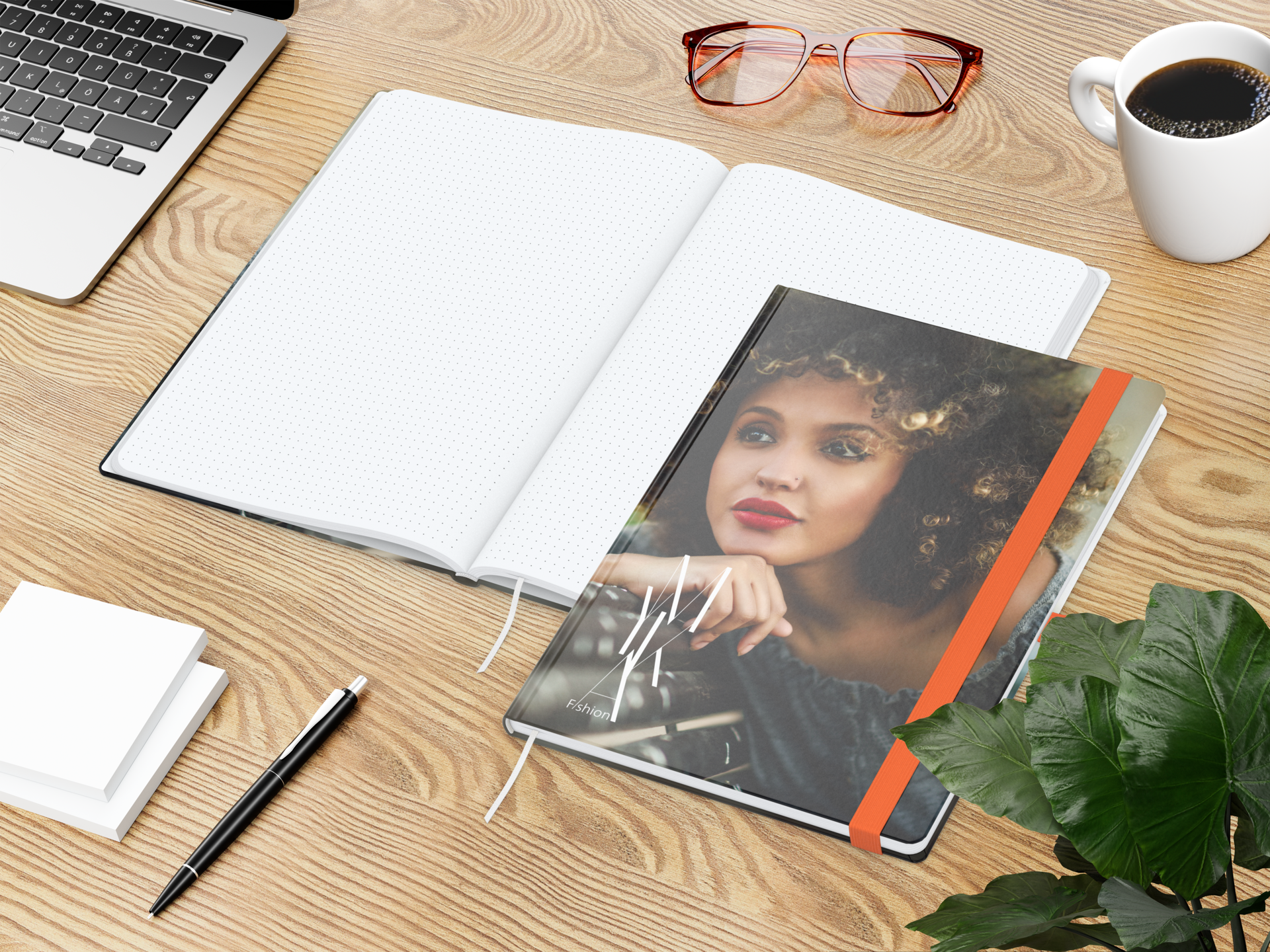 Das Match-Book Cover-Star Bestseller ist ein klassisches Business-Notizbuch mit hochwertiger Hardcover-Verarbeitung und umfassender Ausstattung. Es bietet viel Platz für Notizen und überzeugt durch seine langlebige Qualität sowie eine vollflächig nutzbare Werbefläche auf dem Einband.