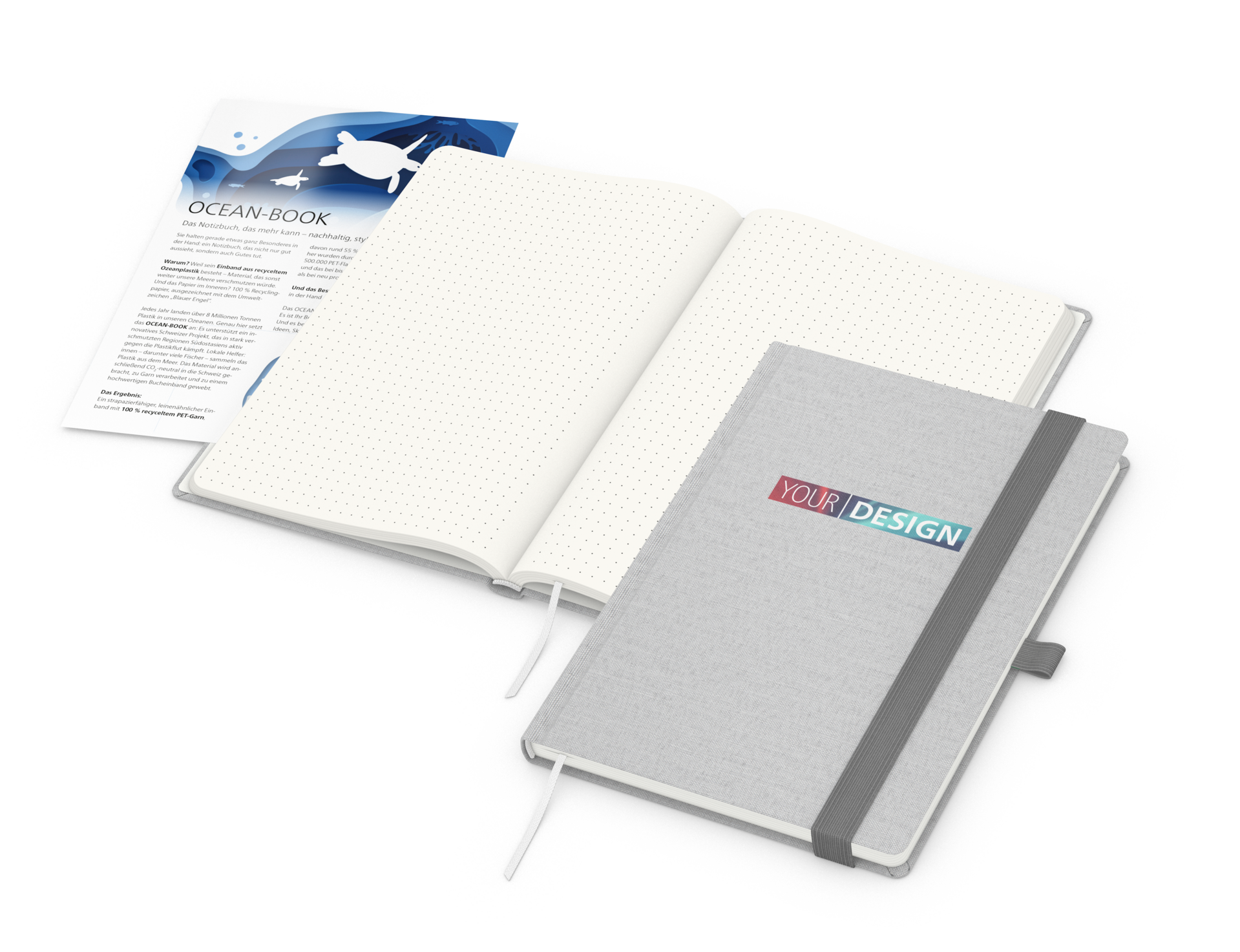 Das Ocean-Book green+blue ist das perfekte Notizbuch für Unternehmen, die eine starke Umweltbotschaft vermitteln und hochwertige Qualität schätzen. Es kombiniert nachhaltige Materialien mit moderner Funktionalität und einer individuellen Gestaltung.